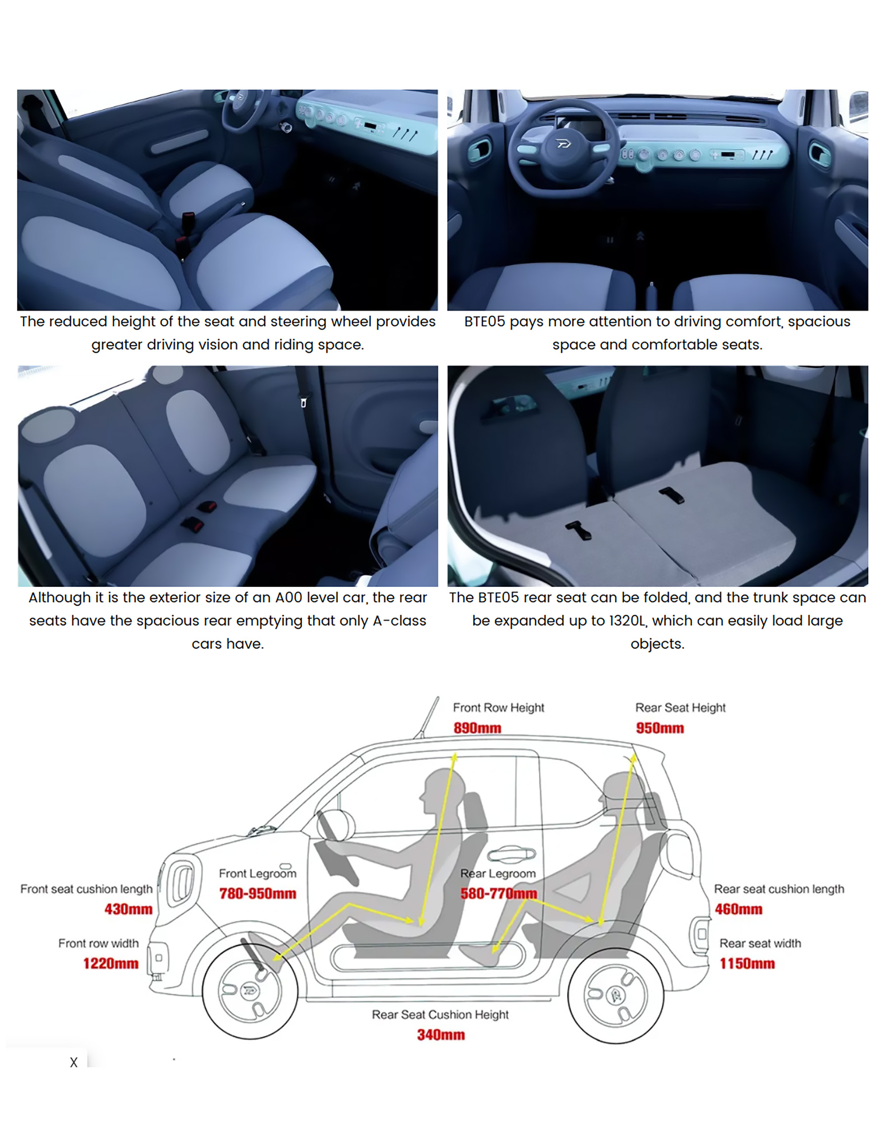 Obwohl der BT05 außen das Format eines A00-Fahrzeugs besitzt, überrascht er innen mit A-Klasse-Raumgefühl: