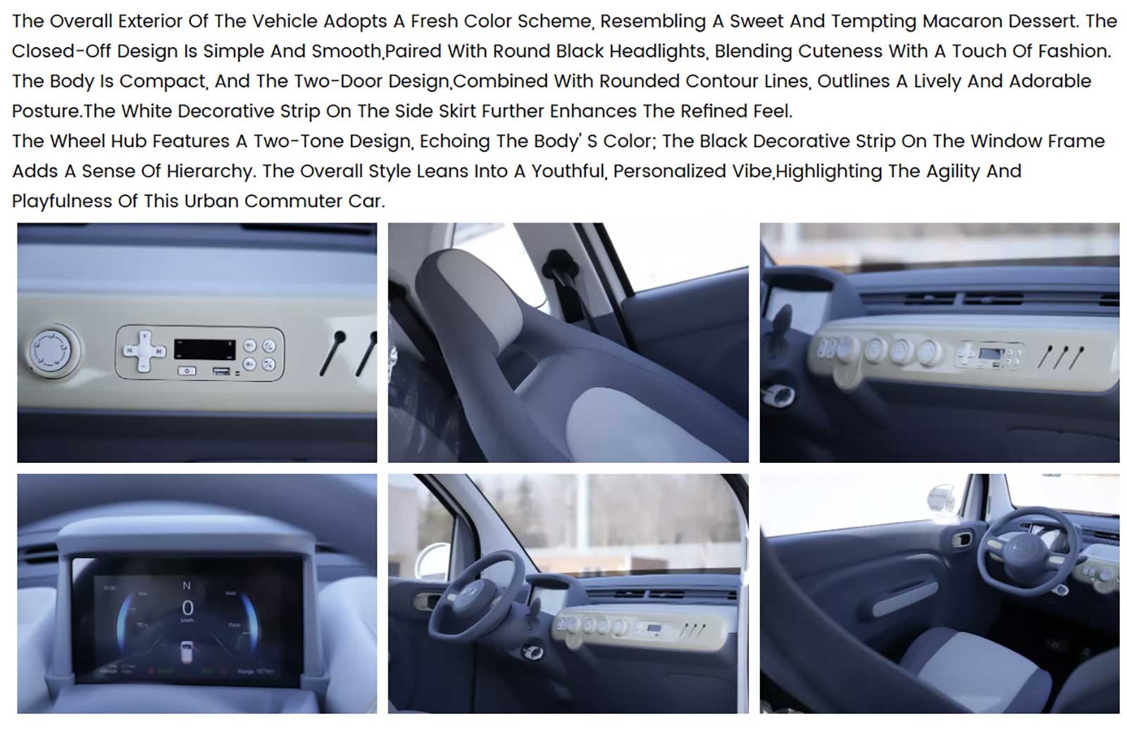 Das Ergebnis ist ein jugendlich-verspieltes, aber stilvolles Stadtfahrzeug, das sich deutlich von klassischen Microcars abhebt.