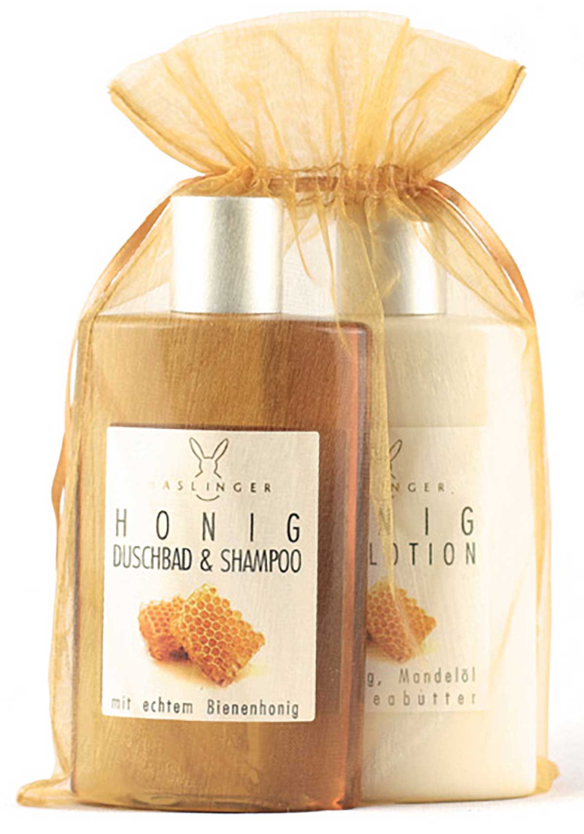 Produktinformationen "Geschenkset Honig von Haslinger mit Duschbad & Shampoo und Bodylotion im Organzabeutel 2207"