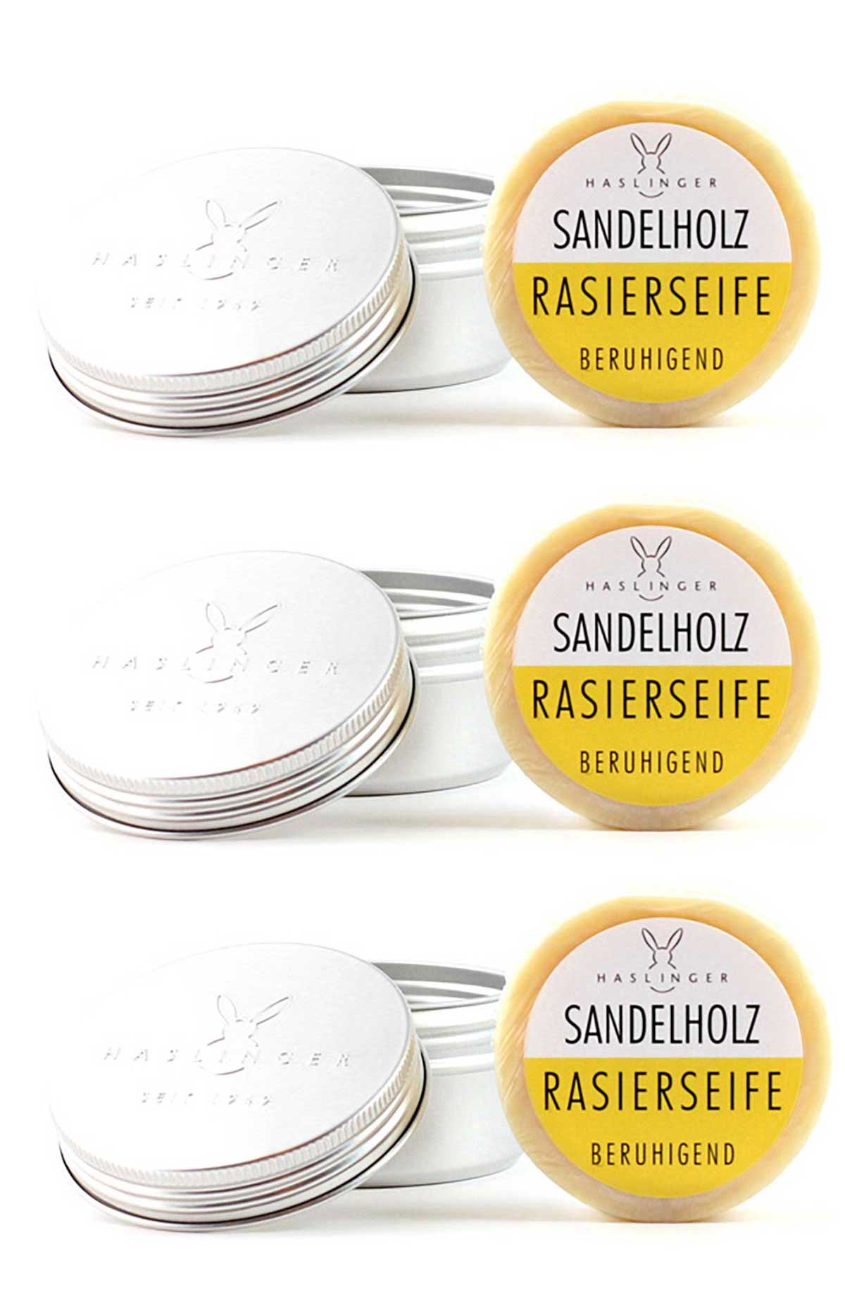 HASLINGER Sandelholz Rasierseife, 3*60gr. (180 Gramm) in Alu-Dose Hergestellt in Österreich