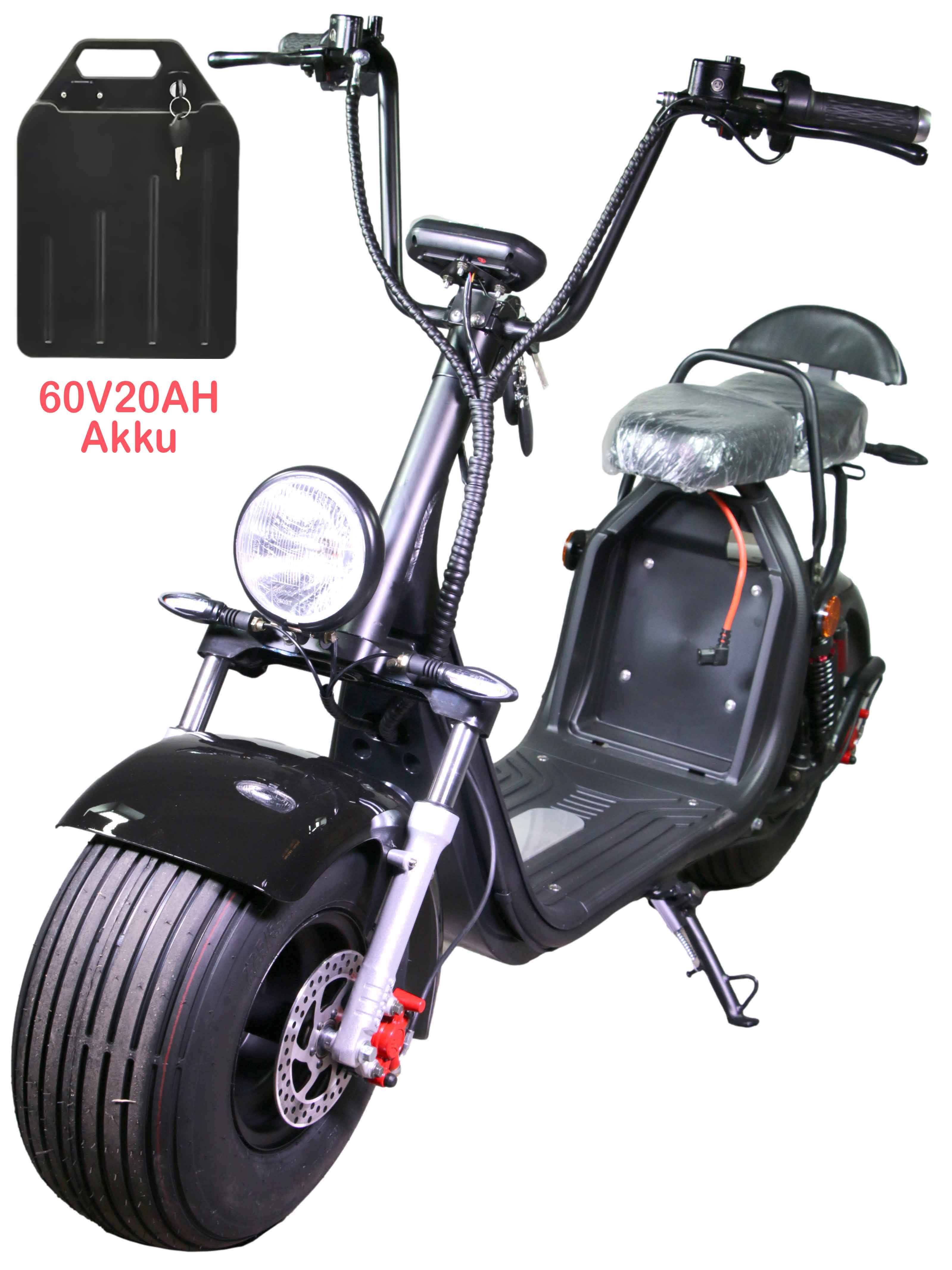 HR-2 45km/h 60V20Ah RocknBikes Elektroroller Motorroller Mokick Harley Scooter CitiCoco Black Shiny Akku 60V20Ah