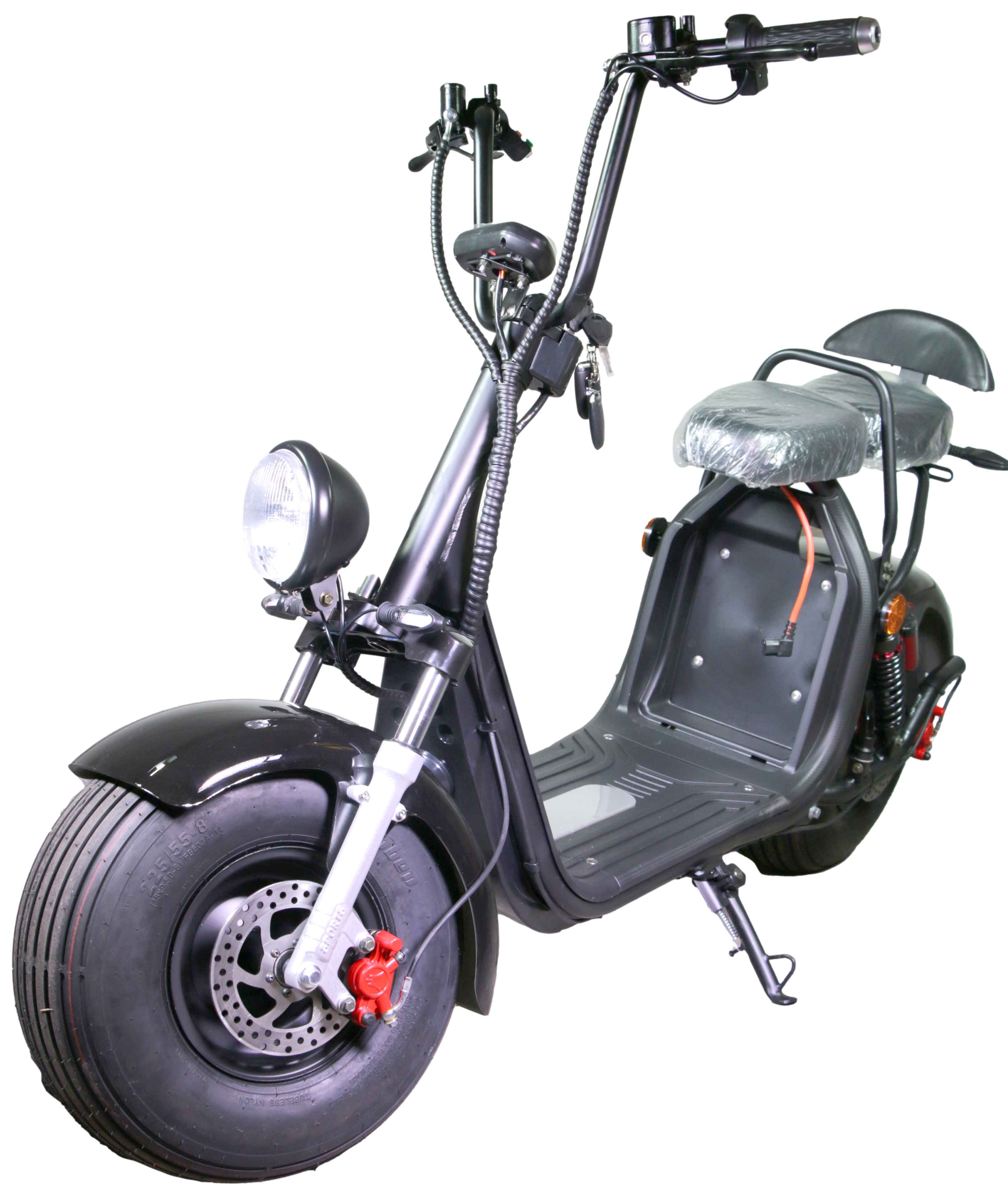 RocknBike HR2-1 CitiCoco 45km/h oder 25km/h Mofa Version Black Shiny Ansicht Seite Links oben, Scheibenbremse