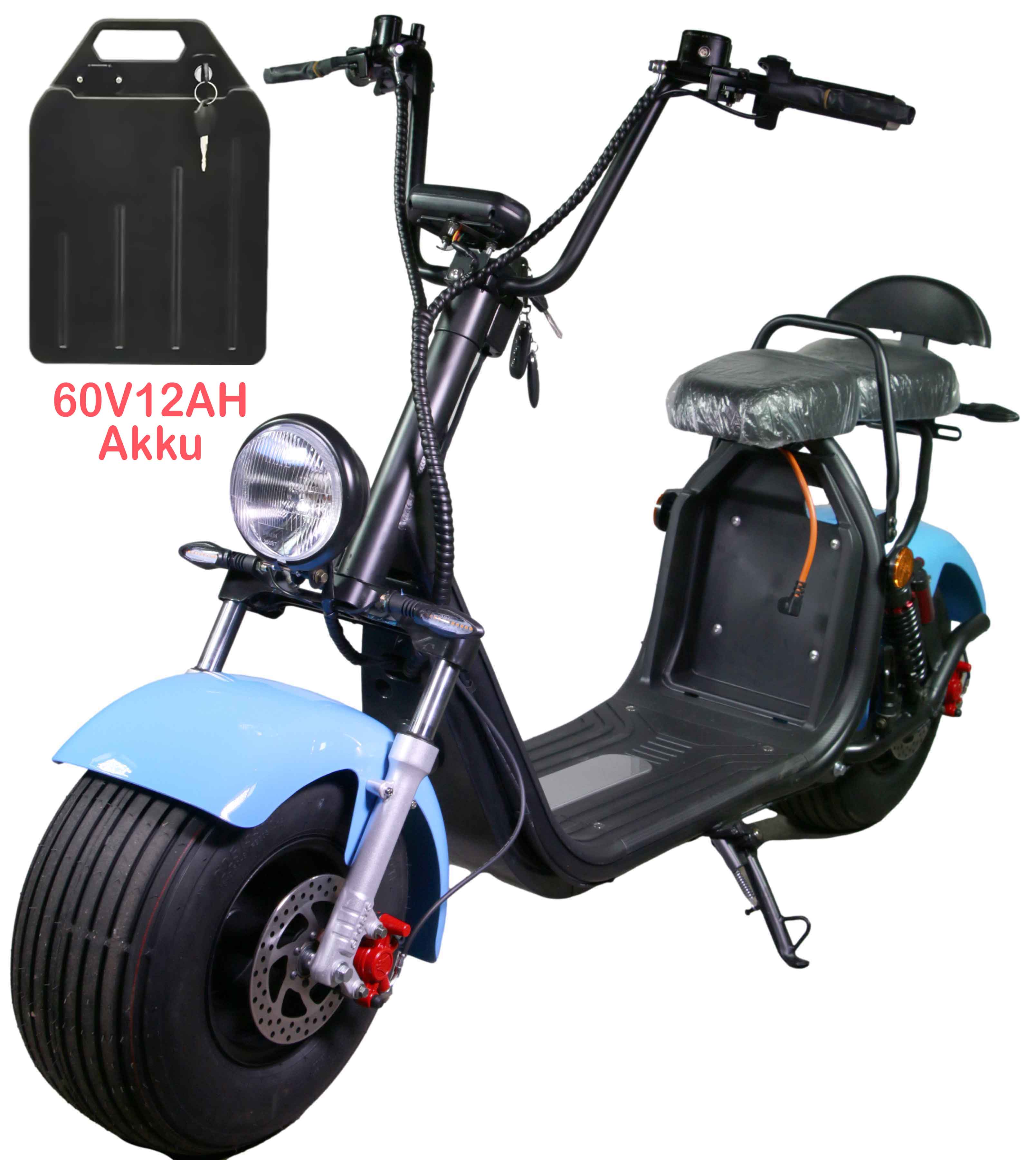 HR-2 RocknBikes Elektroroller Motorroller 45km/h o. 25km/h Harley Scooter CitiCoco Himmelblau Akku wählbar