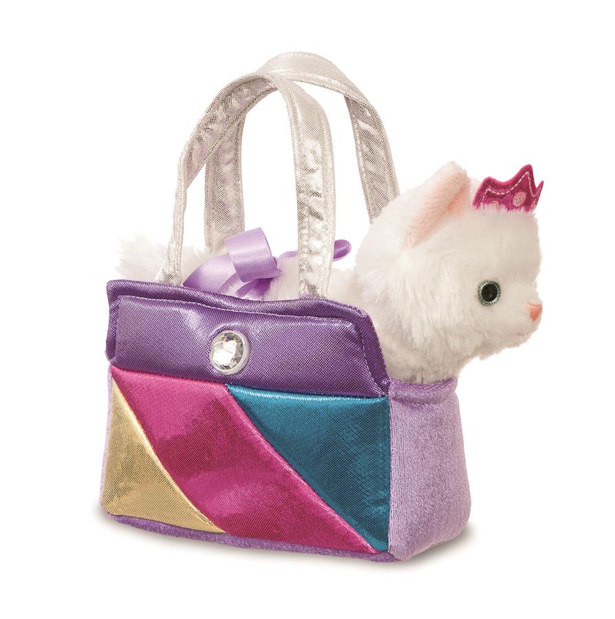 Auroras Fancy Pal-Kollektion mit Handtasche. Unsere wunderschöne, glitzernde und vielfarbige Tiertragetasche mit weichen und kuscheligen Stofftieren, von denen einige sogar eine Krone tragen. Lernen Sie unsere Fancy Pal Kollektion mit all Ihren verschiedenen Tieren, wie Pudel, Einhörner, Katzen, Hunde, Elefannten, Pferden, Kaninchen und Drachen kennen.