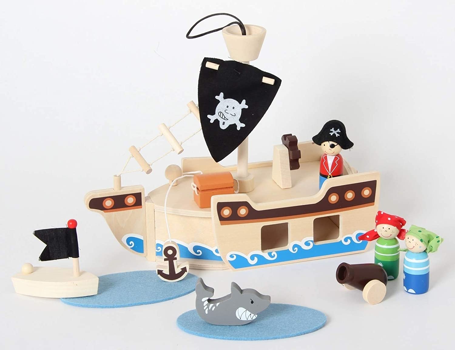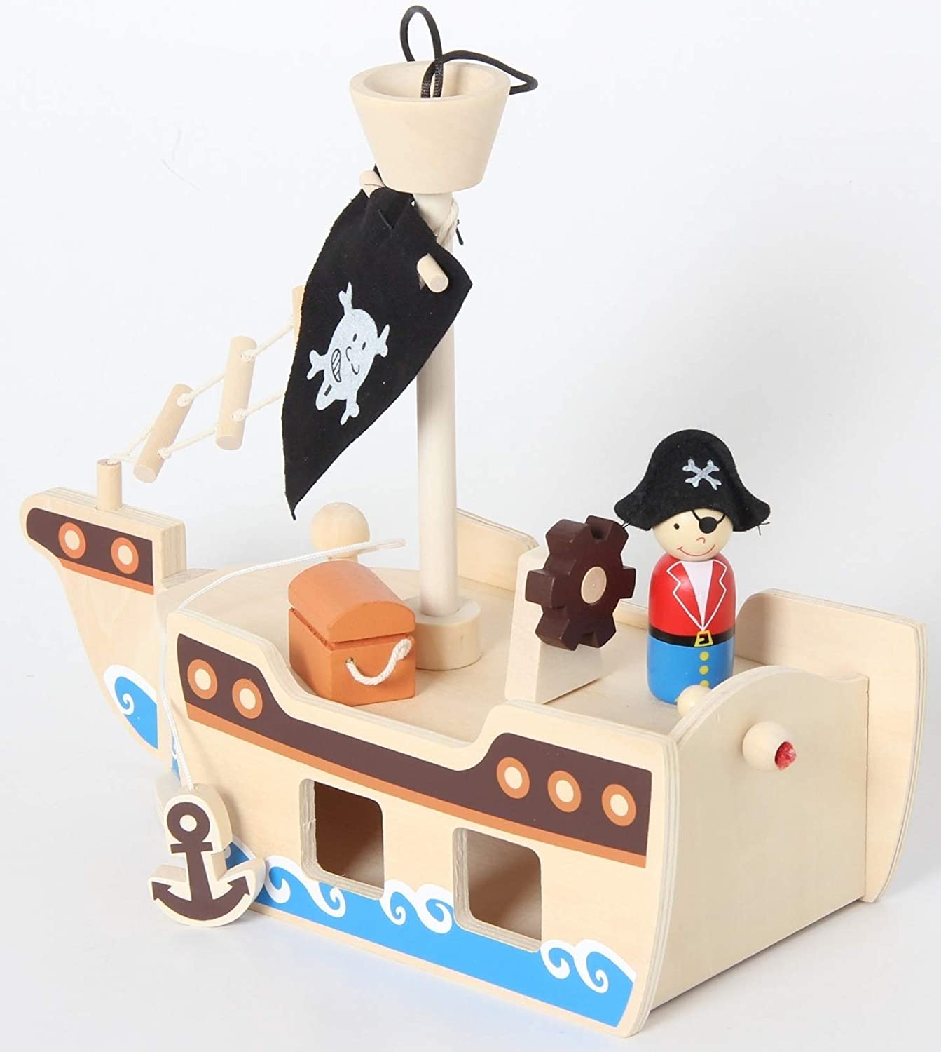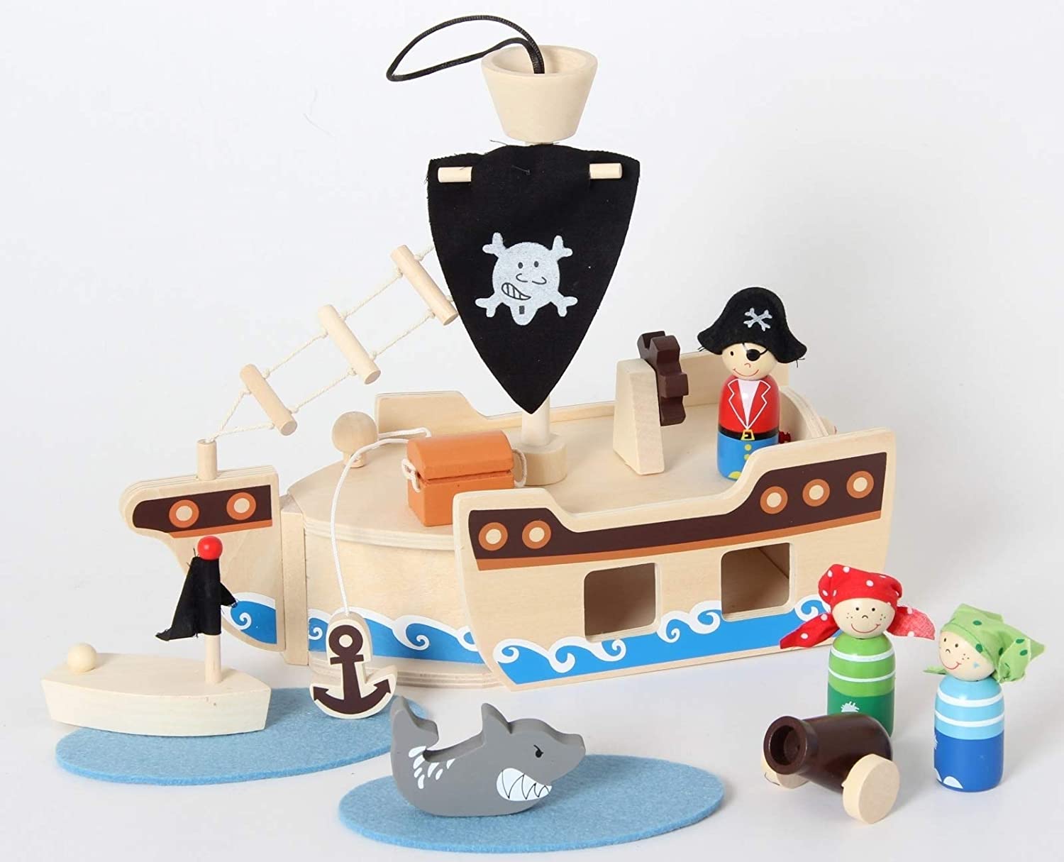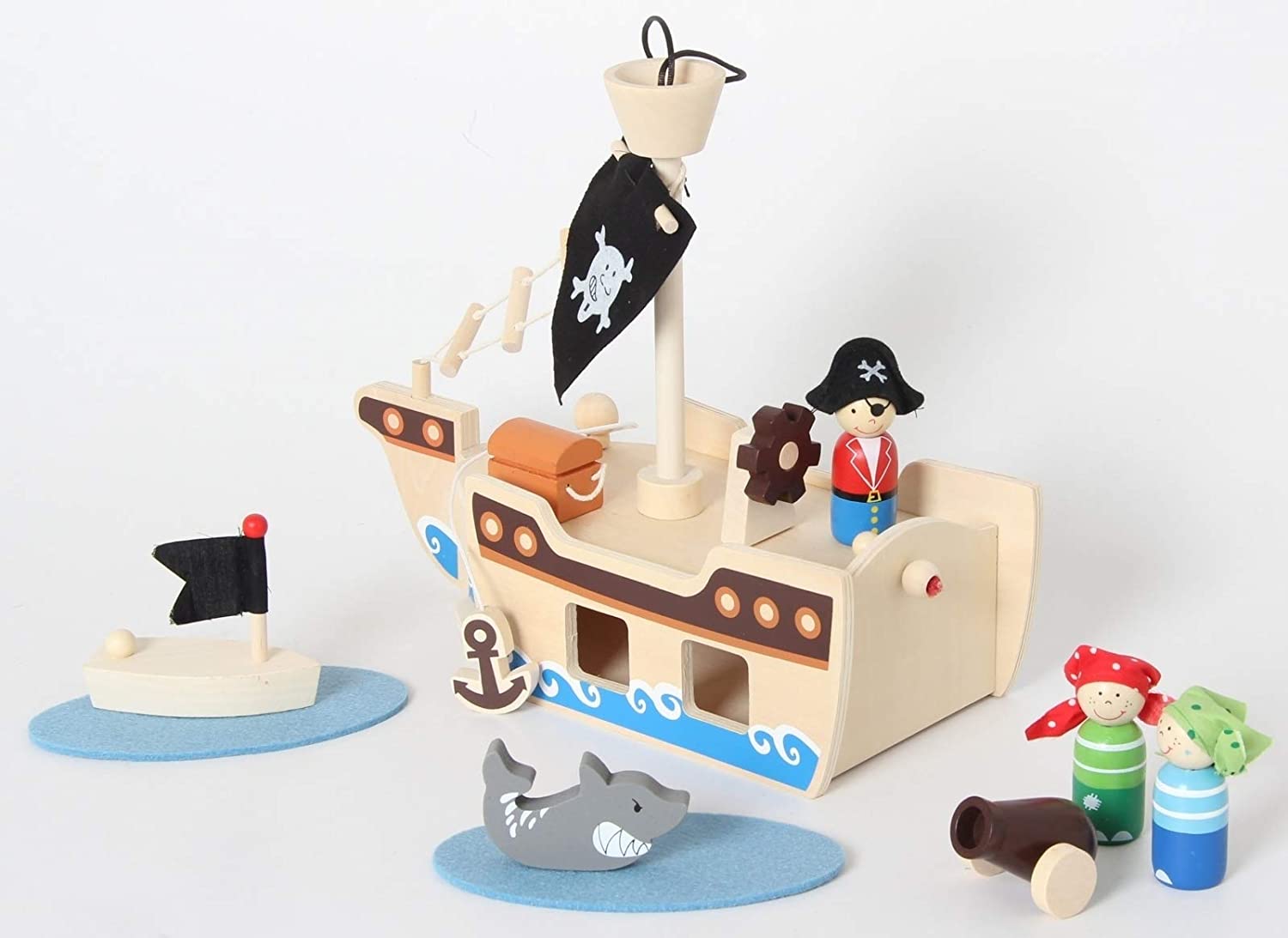 Inware 22740 - Piraten Schiff, 10-teilig, Holz, Spielset