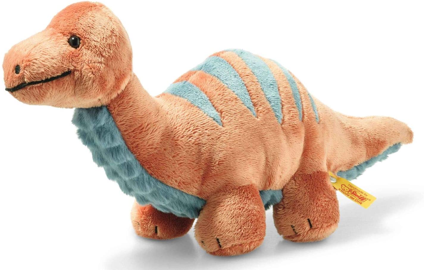 Steiff Bronko Brontosaurus 28cm dunkelorange/petrol 087837 Dinosaurier