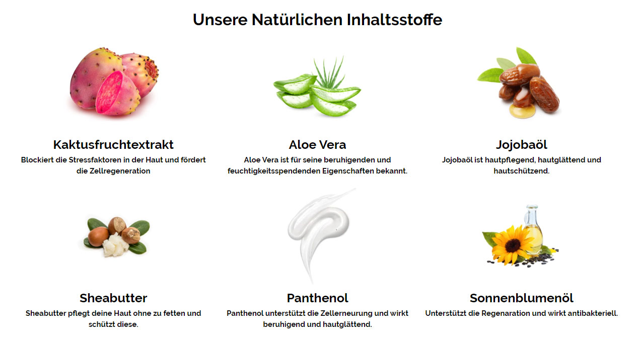 - Die hochwertigen Inhaltsstoffe pflegen die haut